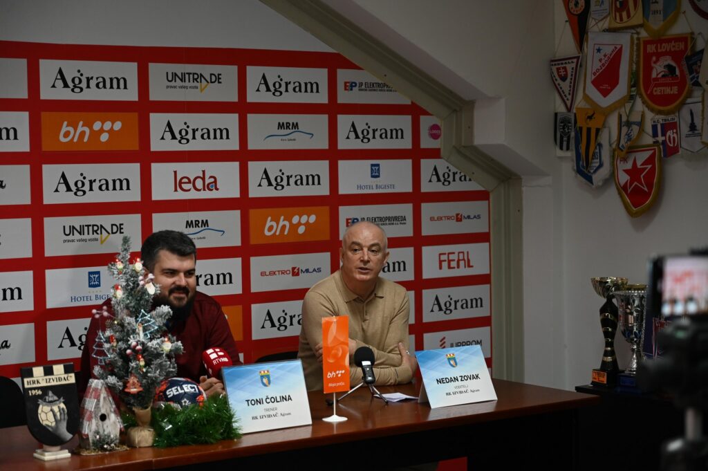 Voditelj momčadi Nedan Zovak je ukratko predstavio sutrašnjeg protivnika Izviđač Agrama, riječ je o momčadi koju nazivaju i druga Barcelona jer su čak petorica igrača stigla iz Barce, a i stručni stožer je uglavnom „španjolskog štiha“. Tu je još nekoliko poznatih internacionalaca, a ovog ljeta je stigao i hrvatski reprezentativac Luka Cindrić. Zovak je još jednom zahvalio publici na velikoj posjeti i podršci, sponzorima koji prate klub, od glavnog sponzora pa do svih ostalih, a velika zahvala Gradu Ljubuškom i gradonačelniku na osiguranju uvjeta za igranje, te još jednom pozvao navijače da dođu u što većem broju.