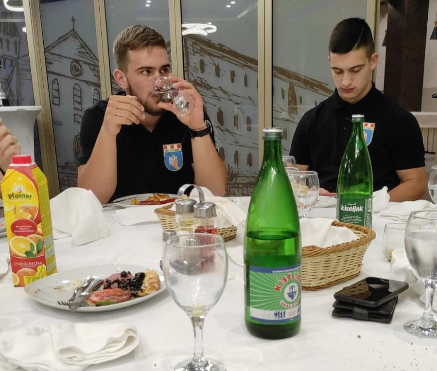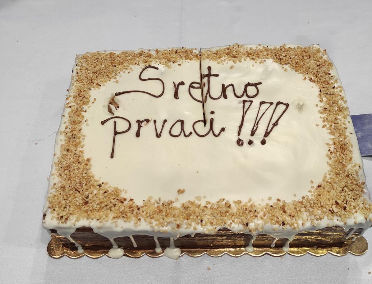 Stjepan Primorac, direktor hotela za prvake BiH u rukometu osim hrane i pića pripremio je i slavljeničku tortu koju su prerezali Matea Šumelj, kapetanica ženske ekipe i Domagoj Alilović, kapetan muške ekipe.